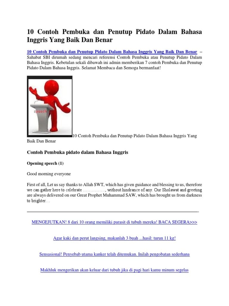 He has been giving us mercies and blessings so that . Terlebih dahulu, marilah kita memanjatkan puji syukur ke hadirat allah tuhan yangmaha penyayang yang telah menganugerahkan berbagai kenikmatan . Ketika menyampaikan pidato berbahasa inggris, hal yang perlu diperhatikan adalah grammar dan pemilihan bahasa. Contoh isi teks pidato penutup bahasa inggris. Pembukaan pidato dalam bahasa inggris simpel dan mudah bagi pemula yang.